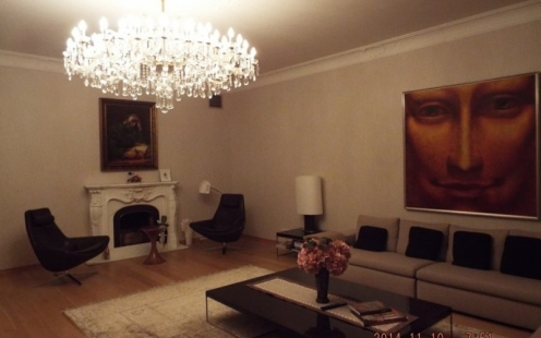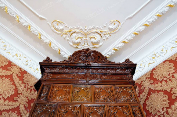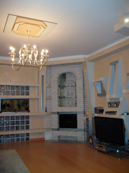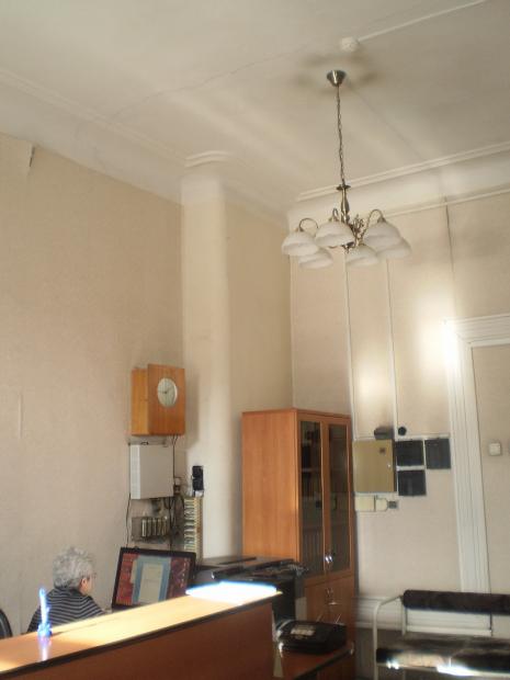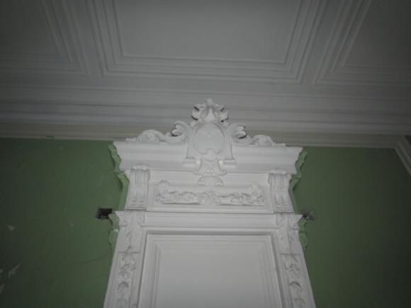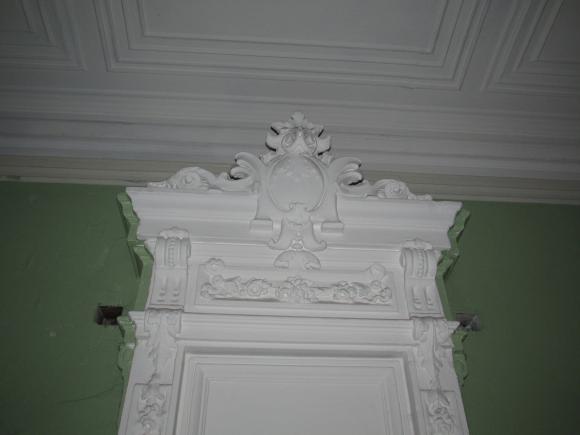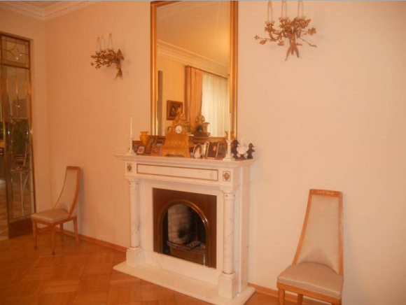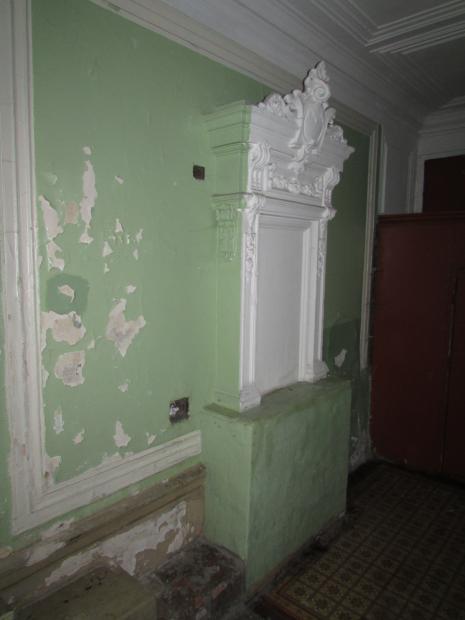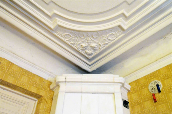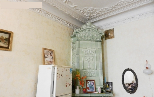 Я в этом доме тоже печь в квартире снял (Або, модель 2с), см. публикацию. В квартирах лепные потолки с лебедями.