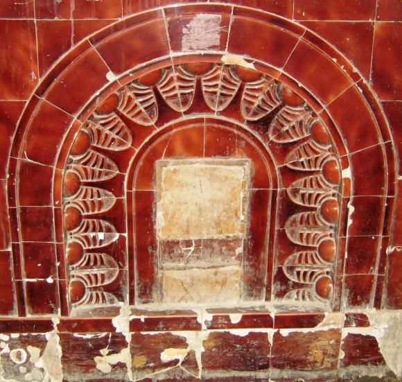 Проект печи. Монохромная изразцовая печь с рельефным декором в стиле национального романтизма.