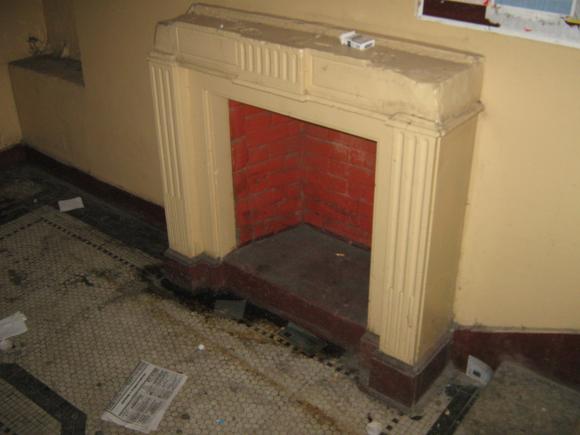 Правая парадная. Камин отделан современной плиткой. Та, что на полу - тоже современная