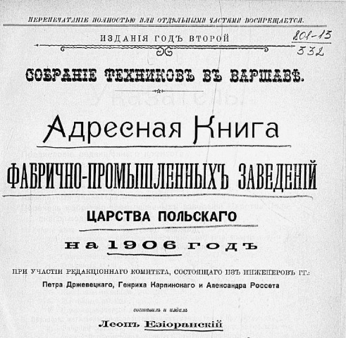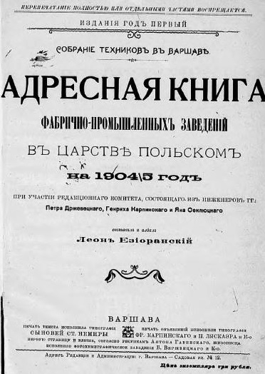 В Адресной Книги Фабрично-Промышленых Заведений в Царстве Польском