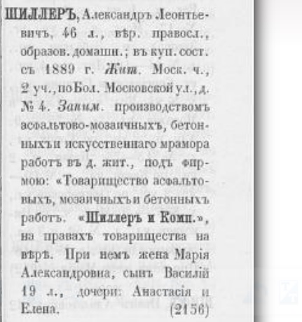 Александр Леонтьевич Шиллер занимался со своей конторой различными строительными подрядами