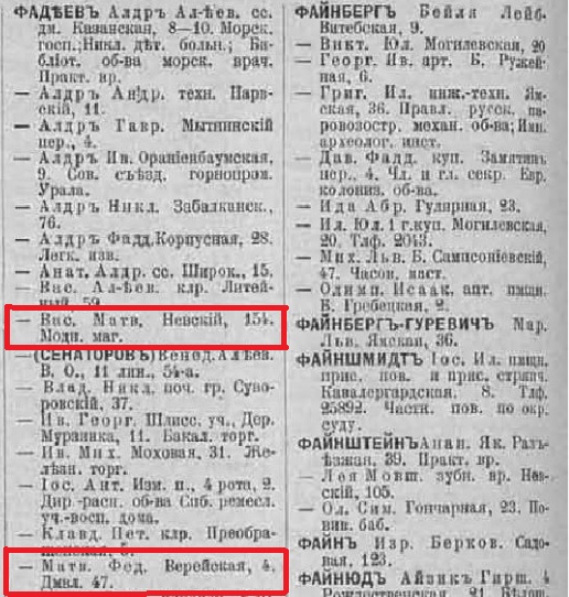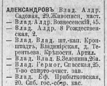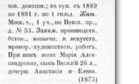 Адреса его конторы менялись,но более всего значились на Невском.53 с 1896 по 1908 год
