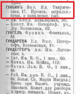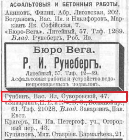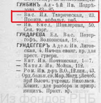 Согласно ВП 1901-1903 Контора Гунбина значилась на Таврической,17