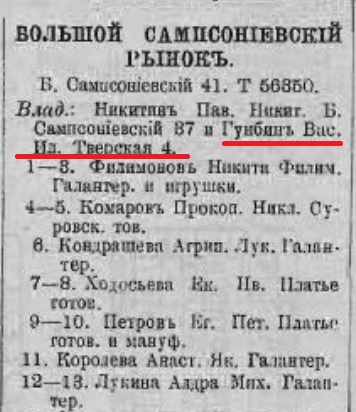 Так вот владельцами с момента основания этого рынка и до революции 1917 года были: