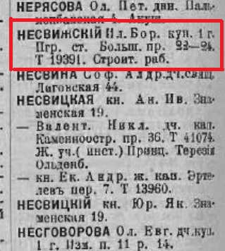 Илья Борисович Несвижский в период 1913-1917 года значился