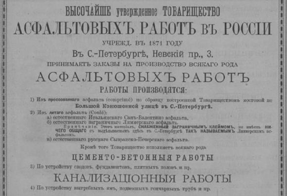 Товарищество Асфальтовых Работ в России было учреждено в нашем городе в 1871 году