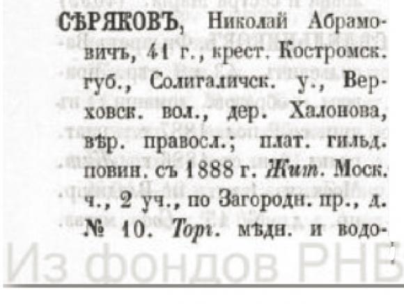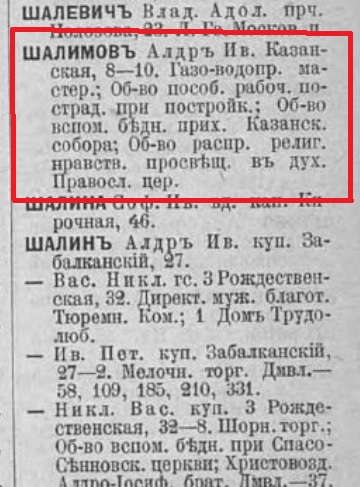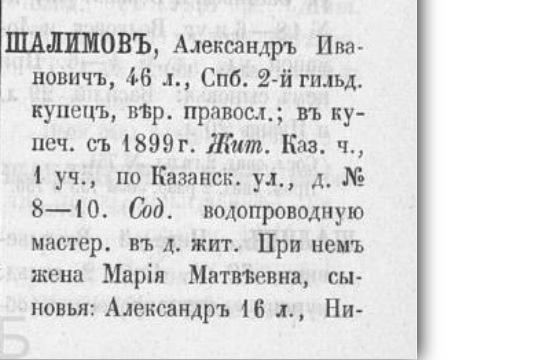 1895 год Александр Иванович Шалимов значится в доходном доме