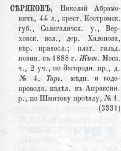 Немного из истории,основываясь на справочниках ВП 1896-1917 и Купеческих книгах 1899 1903