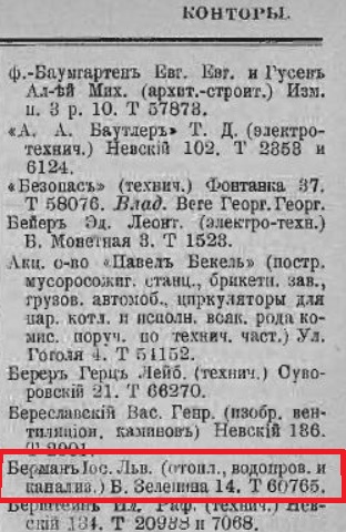 и перебрался на Б.Зелинина,14 где и значился до революции 1917 года