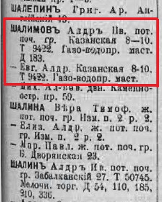 на Казанской ул.8-10 вместе со своим сыном Евгением Александровичем Шалимовым