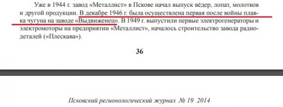 На фото Псковский Механический Завод "Выдвиженец" (Псковская Правда от 20.12.1947 года)