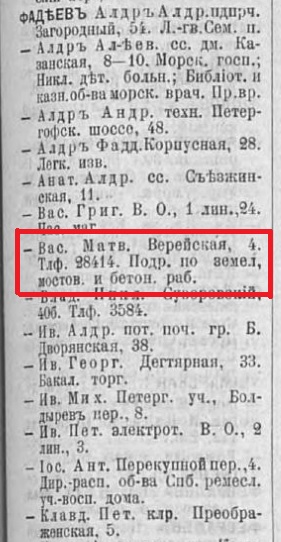 После смерти отца Василий Матвеевич Фадеев открывает свою контору в 1908 году