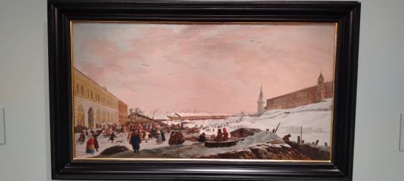 Не пропустил французский художник и русские забавы. На картине, изображающей зимнее катание с гор на реке Неглинке под кремлевскими стенами, художник не забыл и развешенное на морозе белье, и драку мужиков, а на переднем плане явно перепившийся мужчина, которого поддерживают друзья. Спиной к нам стоит, очевидно, сам автор, одетый в бархатную шубу, подбитую лисьим мехом.
