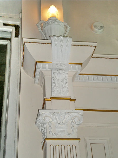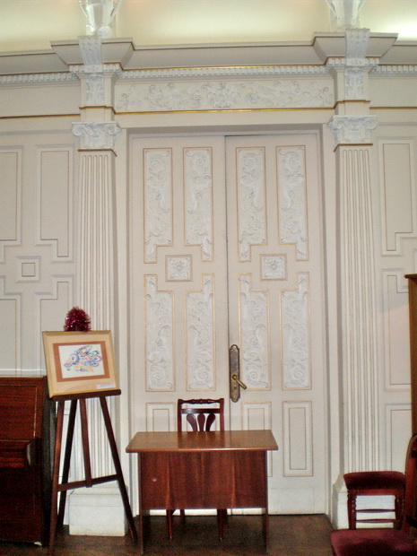 Это Белый зал. "Необычен смешением классицистических и готических мотивов". Лепное убранство создал скульптор Л.А. Дитрих
