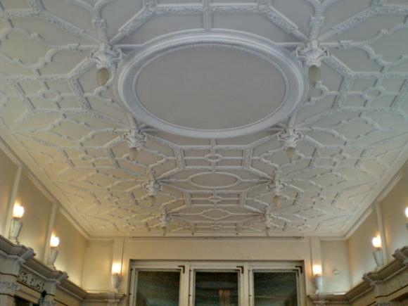 А скажите мне пожалуйста в каком зале был "струистый" потолок, где Мира Львовна рассказывала о реставраторе, который много сделал работы для дома (фамилию я тоже забыла)?