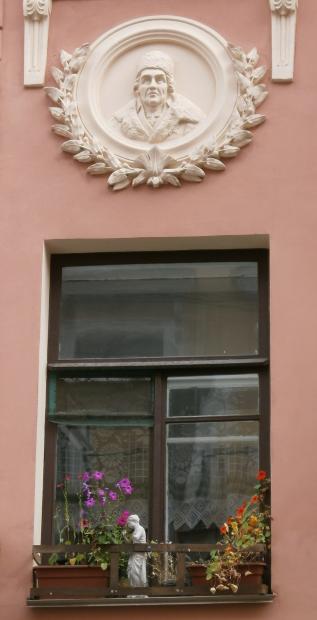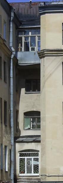 Значит, промахнулась я немного с определением принадлежности окна с мозаикой, пусть будет Вася Алексеев. А головы - где-то в квартале Маринеско-Стачек-Зайцева, что отражается - с ходу не скажу, думать надо.