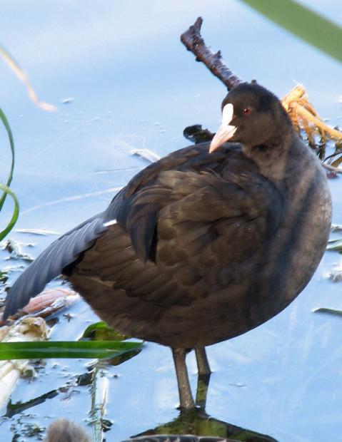 Это птенец лысухи. Вырастет из него вот такая птичка: