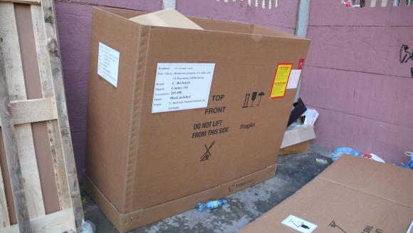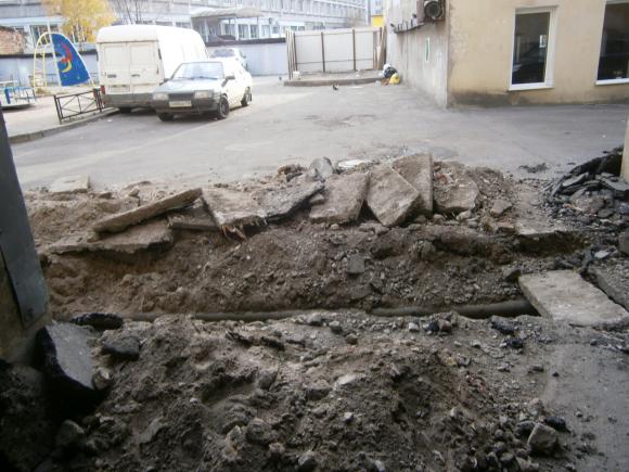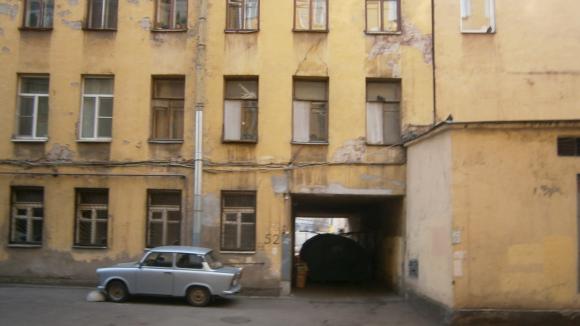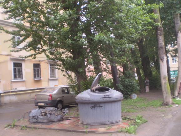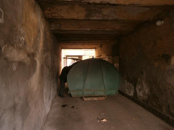 Старо-Петергофский пр., 52. 25.10.2014. Подъезд к помойке разрыт, поэтому контейнер выгрузили прямо в арке дворового флигеля