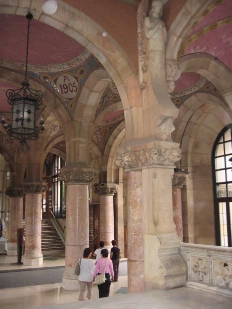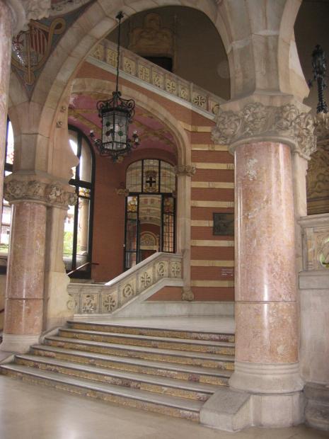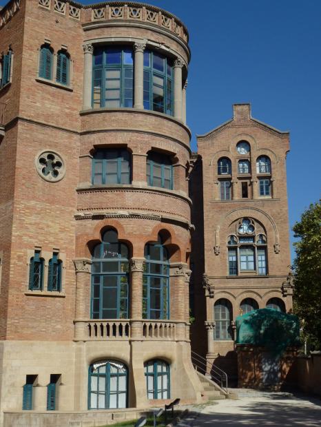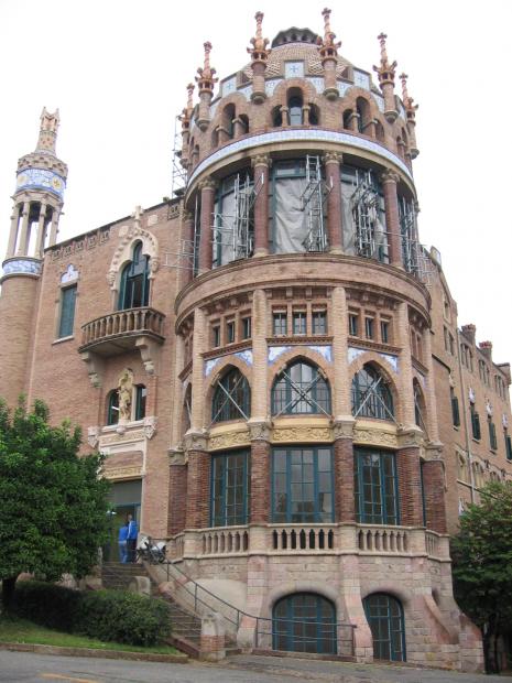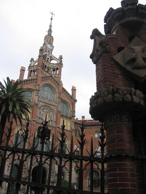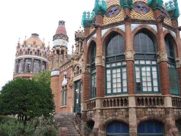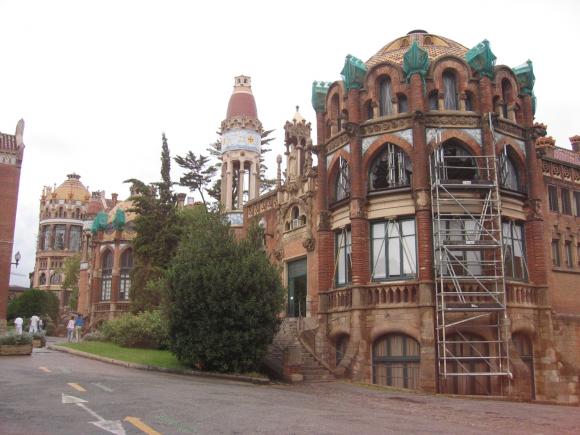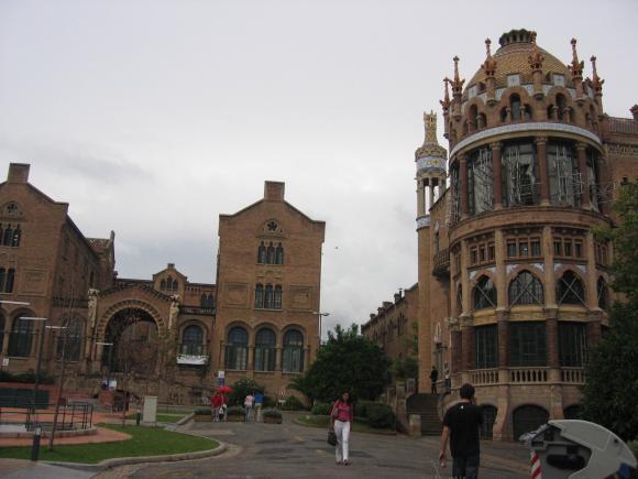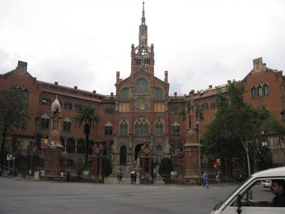Больница Святого Креста. Строительство начато в 1902 году по проекту архитектора Луиса Доменека-и-Мунтанера из завершено в 1930-м году его сыном Пере.. Создан по прогрессивной павильонной системе. Корпуса соединены подземными переходами. Этот прием использован Ильиным и Клейном в больнице Петра Великого.