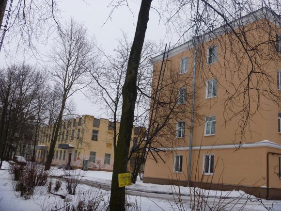Это здание было КЭЧ. Изначально здание было не покрашено и не оштукатурено. Такого же серо-красного цвета, как дома вокруг.