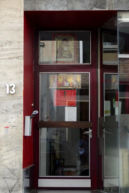 а в этом здании находится православная церковь - никаких внешних признаков, только иконы на двери за стеклом
